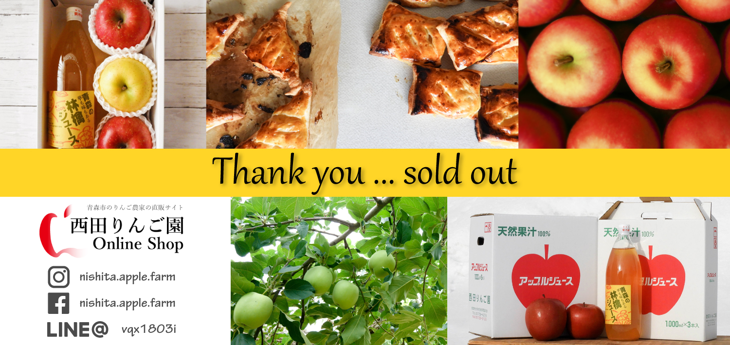 いつも、西田りんご園オンラインショップをご利用いただき、誠にありがとうございます。おかげ様で、ご贈答用サンフジ、王林ともに完売いたしました。ご家庭用りんごは引き続きご注文受付中ですので、引き続きよ...
